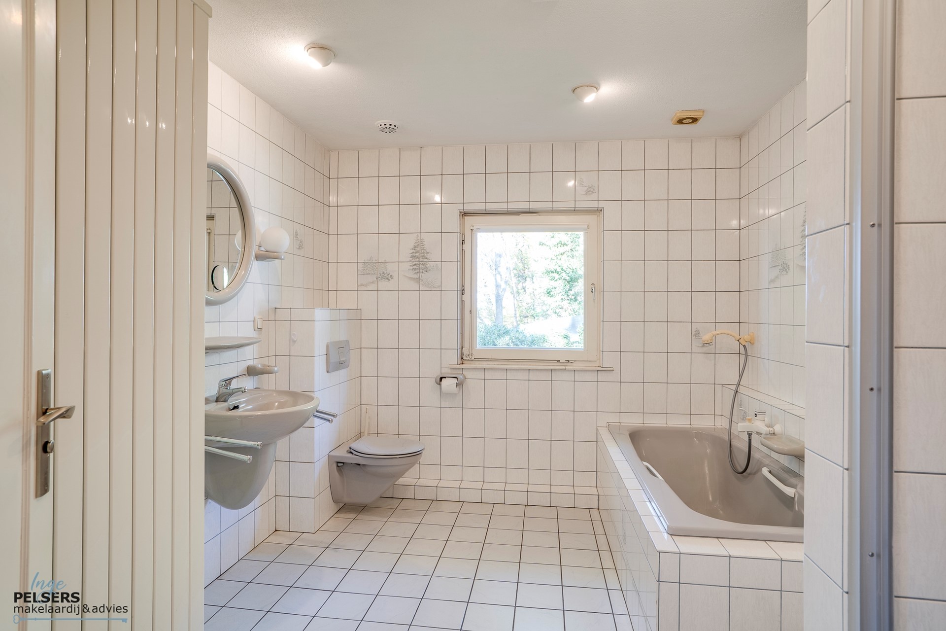 De eenvoudige, maar prima badkamer is voorzien van een ligbad, toilet, een douche en wastafel. Een ruimte van mooi formaat waar (mogelijk op termijn) naar ieders wens en smaak een hedendaagse moderne badkamer gerealiseerd kan worden. Een 2de slaapkamer is hier eveneens gesitueerd.