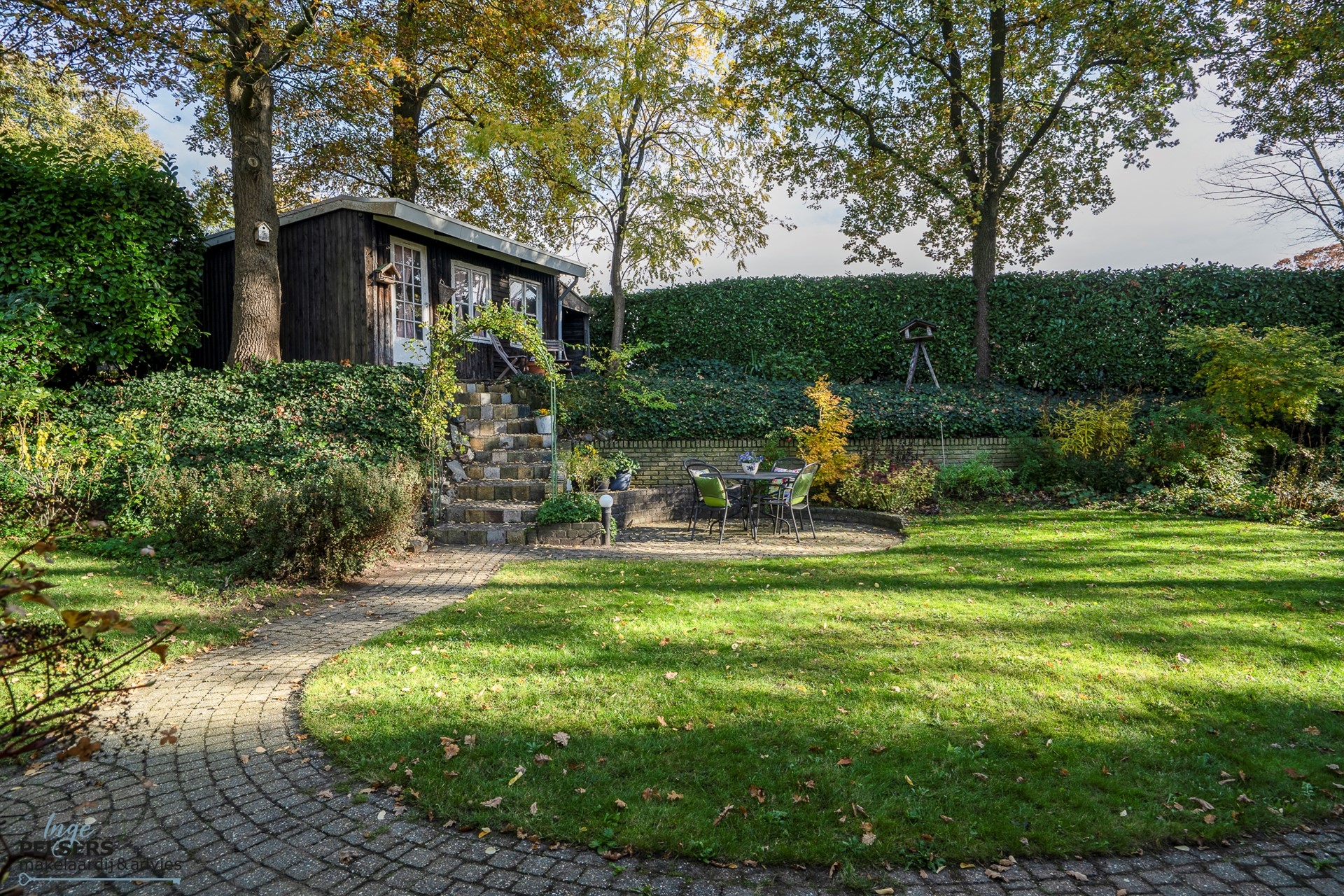 Links achter het woonhuis is een ruim multifunctioneel tuinhuis voor bijvoorbeeld het opbergen van tuingereedschap of een heerlijke plek voor het uitoefenen van hobby’s of een gave mancave is hier natuurlijk ook niet ondenkbaar.