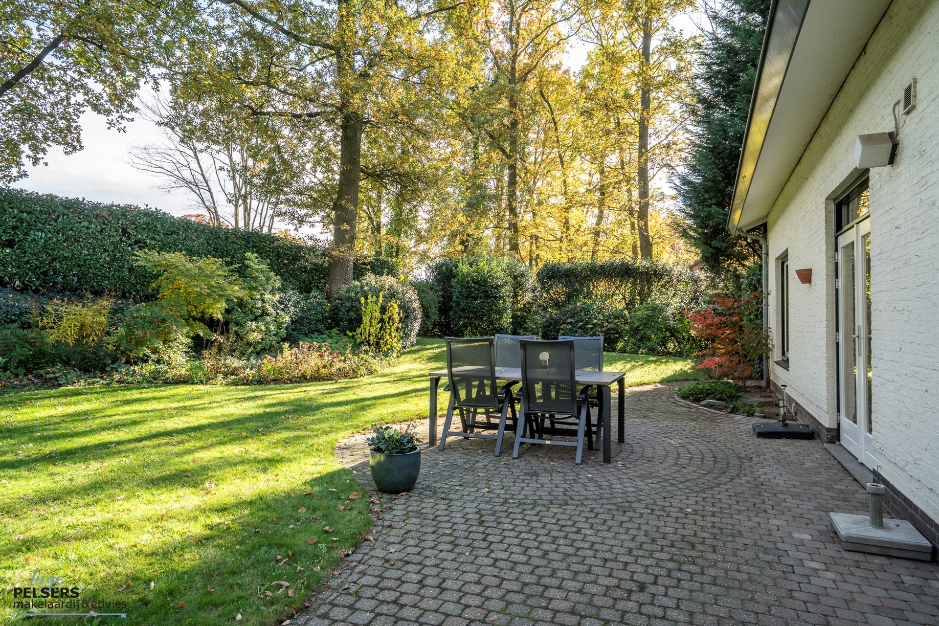 De rondom gelegen tuin is een oase van rust, groen en volwassen beplanting. Door de royale perceelgrootte (2.360 m²) geniet je overal van volledige privacy en prachtige zichtlijnen.