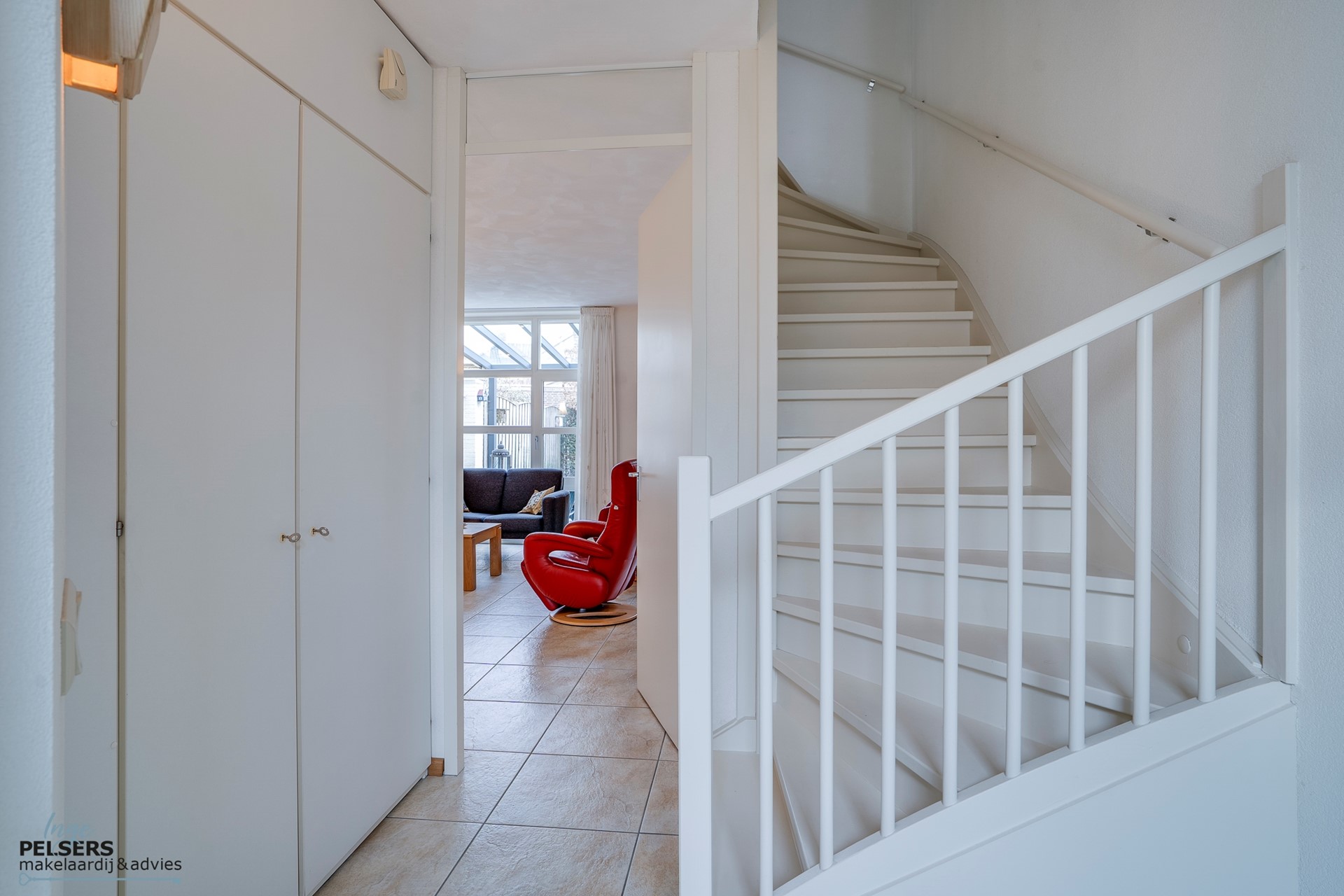 Daarnaast is er in de woonkamer een handige trapkast, ideaal voor het opbergen van voorraad, een stofzuiger of andere dagelijkse benodigdheden.