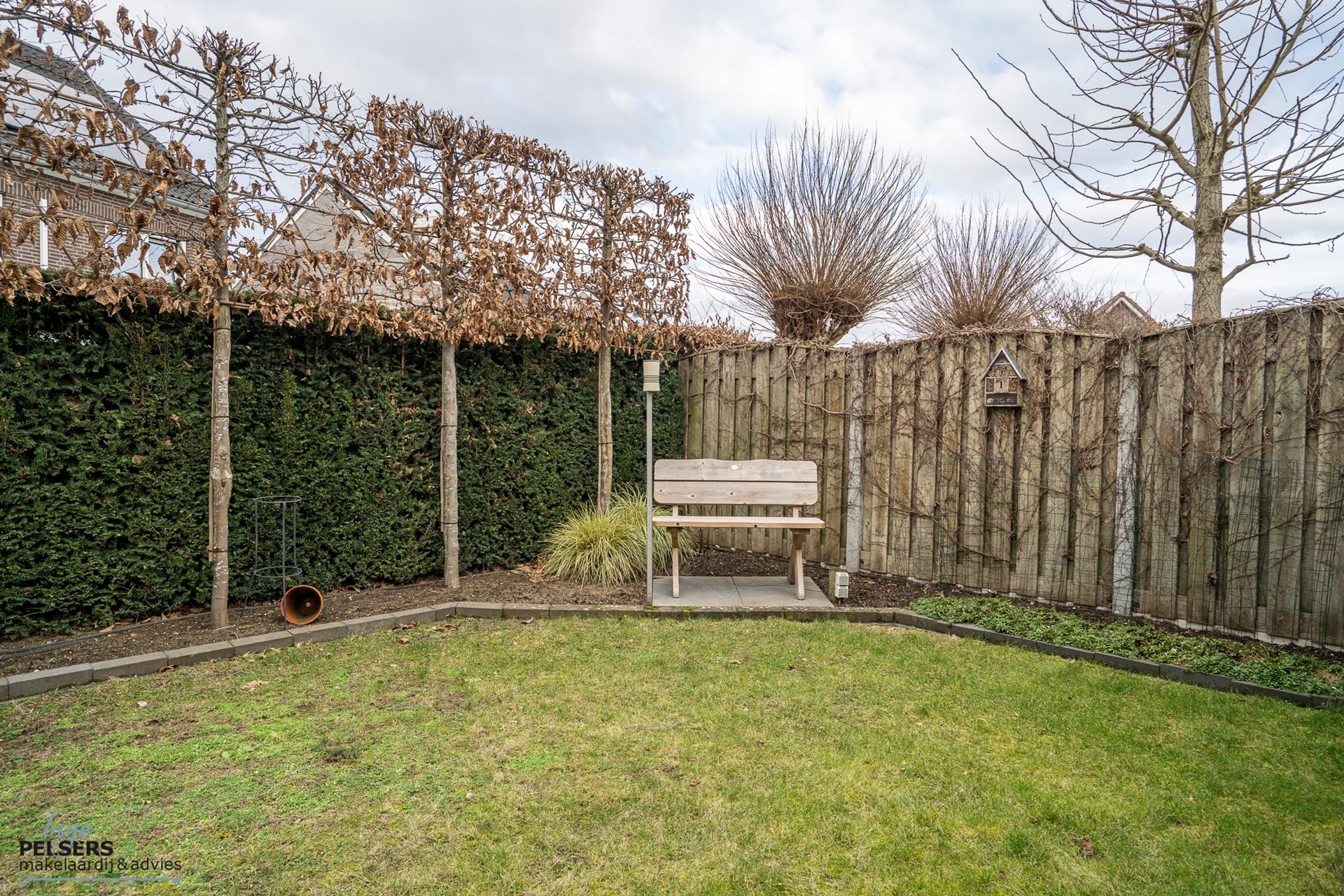 De achtertuin is volledig omheind, verzorgd aangelegd en biedt volop privacy.