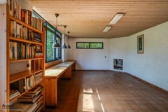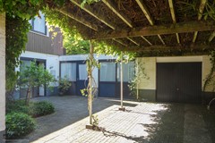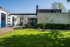 De garage is uitgerust met een watervoorziening, verwarming en elektriciteit. Ook voor deze ruimte zijn vele mogelijkheden te bedenken temeer vanwege het feit dat er een multifunctionele ruimte aangrenzend is gelegen aan de achterzijde van deze garage. Aan de tuinzijde is hier een groot terras aangelegd vanwaar je een riant uitzicht hebt over de achtertuin.