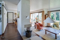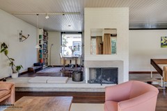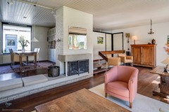 Deze woonruimte met gezellige haardpartij heeft een verrassende indeling. Er zijn diverse zitgelegenheden aanwezig die naar ieders wens en smaak ingericht kunnen worden. Echt mogelijkheden te over vanwege de bijzondere indeling van deze woonkamer.