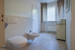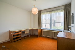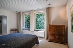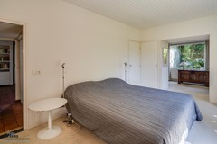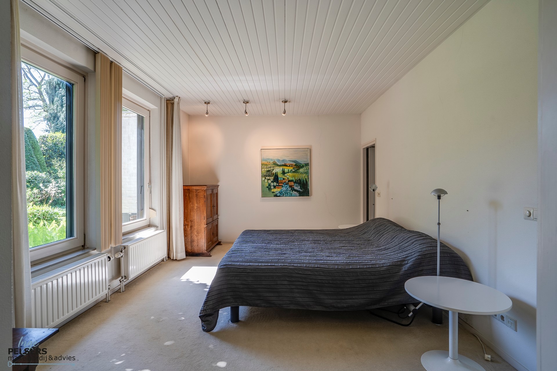 Op de begane grond is aan het einde van de eerder benoemde ontvangsthal een ruime slaapkamer gesitueerd. Deze masterbedroom heeft zicht op de mooie groene achtertuin. De slaapkamer is een riante kamer ensuite en is multifunctioneel te gebruiken. Voorheen was hier de wachtruimte en behandelruimte van de huisartsenpraktijk. Dit gedeelte van het woonhuis is toegankelijk via een separate toegangsdeur aan de voorzijde van het pand met eigen ontvangsthal.