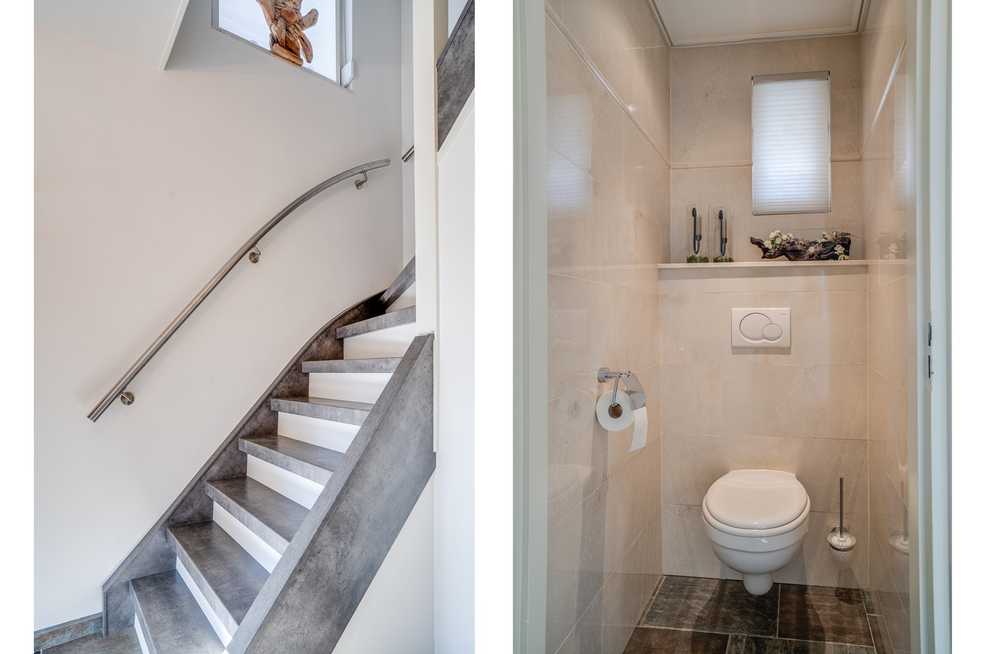 Bij binnenkomst word je verwelkomd in een ruime ontvangsthal, voorzien van een stijlvolle tegelvloer, garderobe en voldoende opbergruimte. Deze hal biedt toegang tot zowel de meterkast, het gastentoilet, de kelderkast met veel bergruimte, de woonkamer en tot de trapopgang naar de eerste verdiepingsvloer.