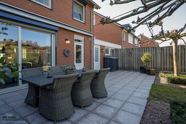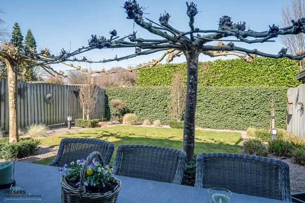 Vanaf de achterzijde van de woning, zowel vanuit de woonkamer als ook vanuit de keuken is er een optimaal tuincontact.