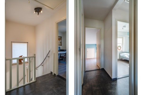 Op de eerste verdieping bevinden zich 4 slaapkamers, allen netjes afgewerkt en voorzien van veel lichtinval. De slaapkamers zijn voorzien van een laminaatvloer en voor comfort, privacy en veiligheid voorzien van rolluiken. De masterbedroom is uitgerust met een airco.