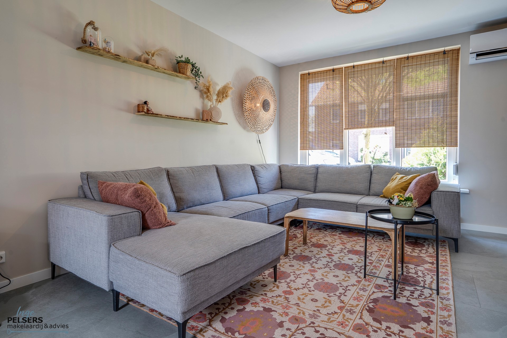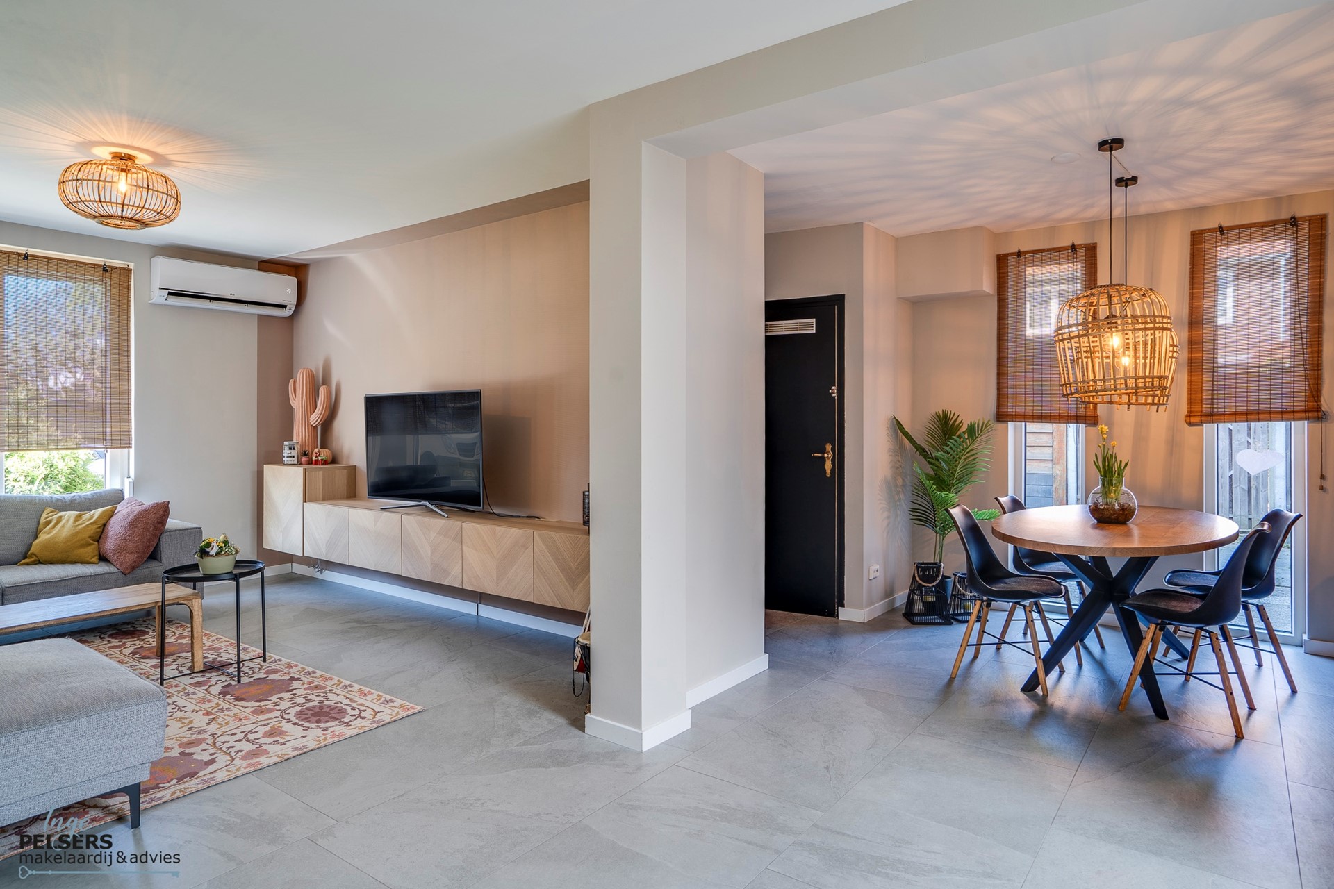 De woonkamer aan de voorzijde van de woning is sfeervol en licht, een plek waar je heerlijk tot rust komt na een lange dag.