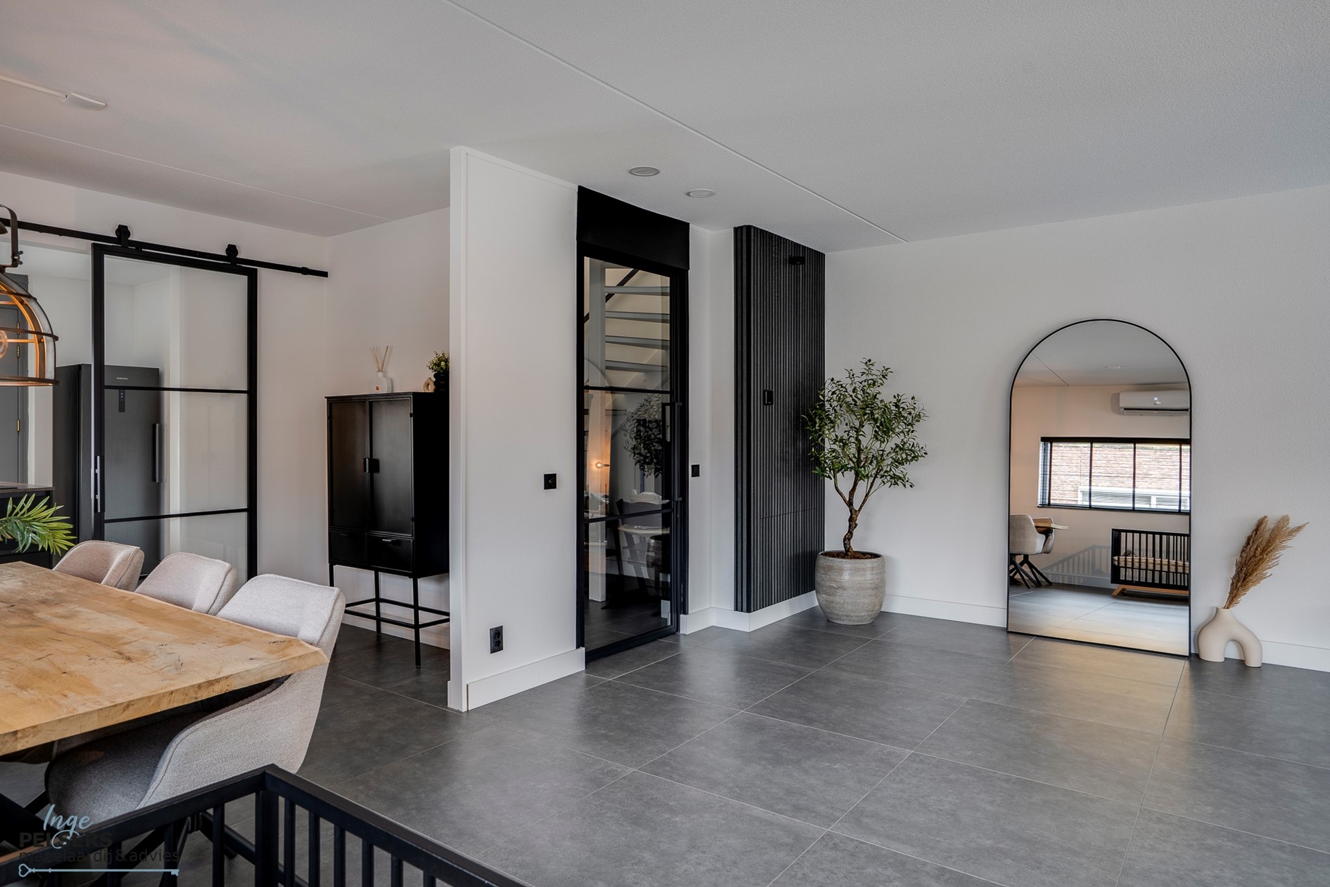 Tegelijkertijd voelt het huis warm en uitnodigend aan, een plek waar je tot rust komt na een lange dag en waar het fijn is om met je gezin te genieten en gasten te ontvangen.