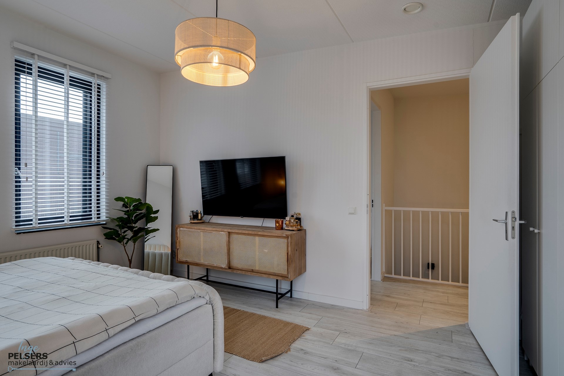 Via de open trapopgang bereik je de overloop op de verdiepingsvloer. Deze verdieping heeft is voorzien van extra brede luxe laminaatvloeren.